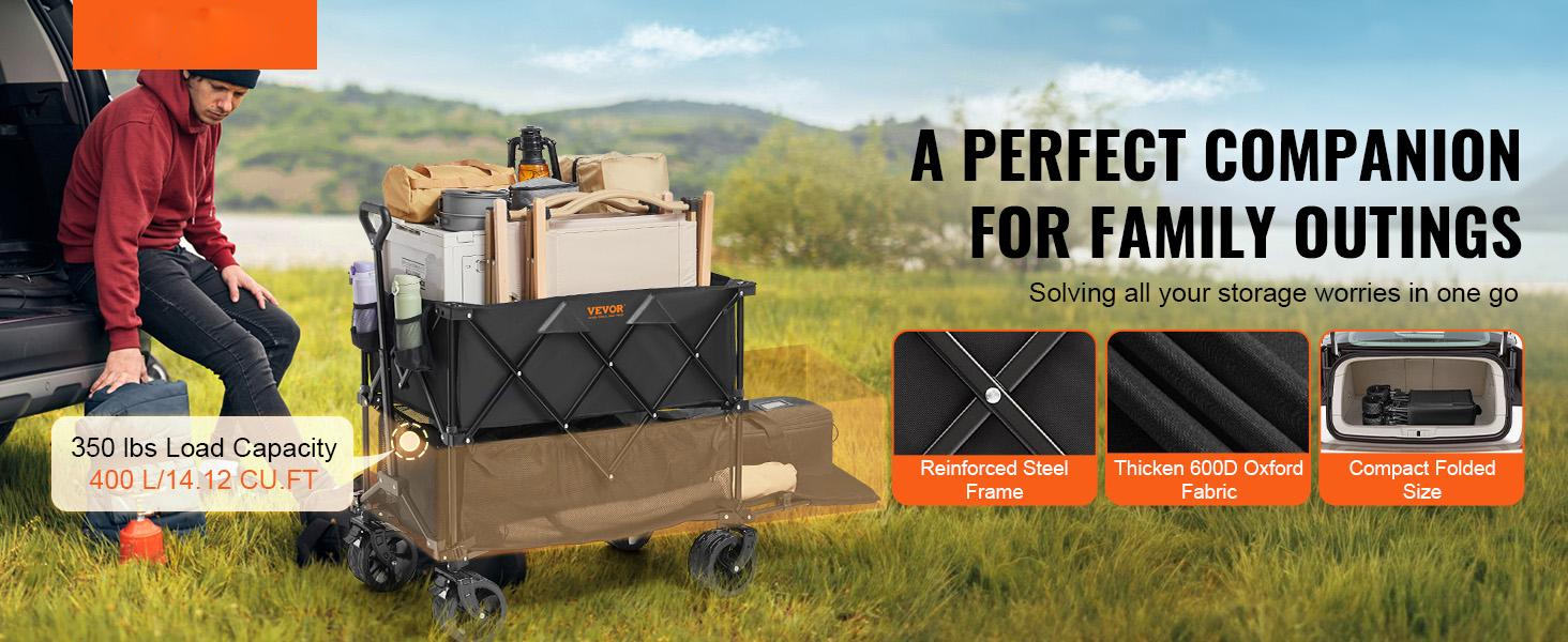 Featuring a double-layer design, this heavy-duty wagon cart offers ample space, making it the perfect for family outings. Made of 600D Oxford fabric, it's waterproof, UV-resistant, and easy to clean. Solve your outdoor storage needs effortlessly!